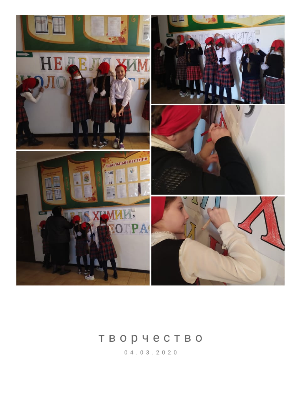 В школе прошла Неделя химии, биологии и географии. Учащиеся сре днего звена приняли активное участие в проведении Недели. Были проведены открытые уроки и внеклассные мероприятия, конкурс стенгазет