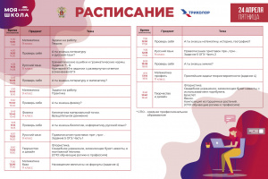 Расписание на 24 апреля трансляции телевизионного образовательного проекта Минпросвещения России «МОЯ ШКОЛА в online».