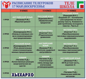 16.05.2020Занятия продолжительностью до 10 минут начинаются в 9.00. Отметим, что все образовательные выпуски телепроекта доступны для просмотра на сайте Министерства образования и науки ЧР по ссылке, указанной в шапке профиля @minobrnauki_95.