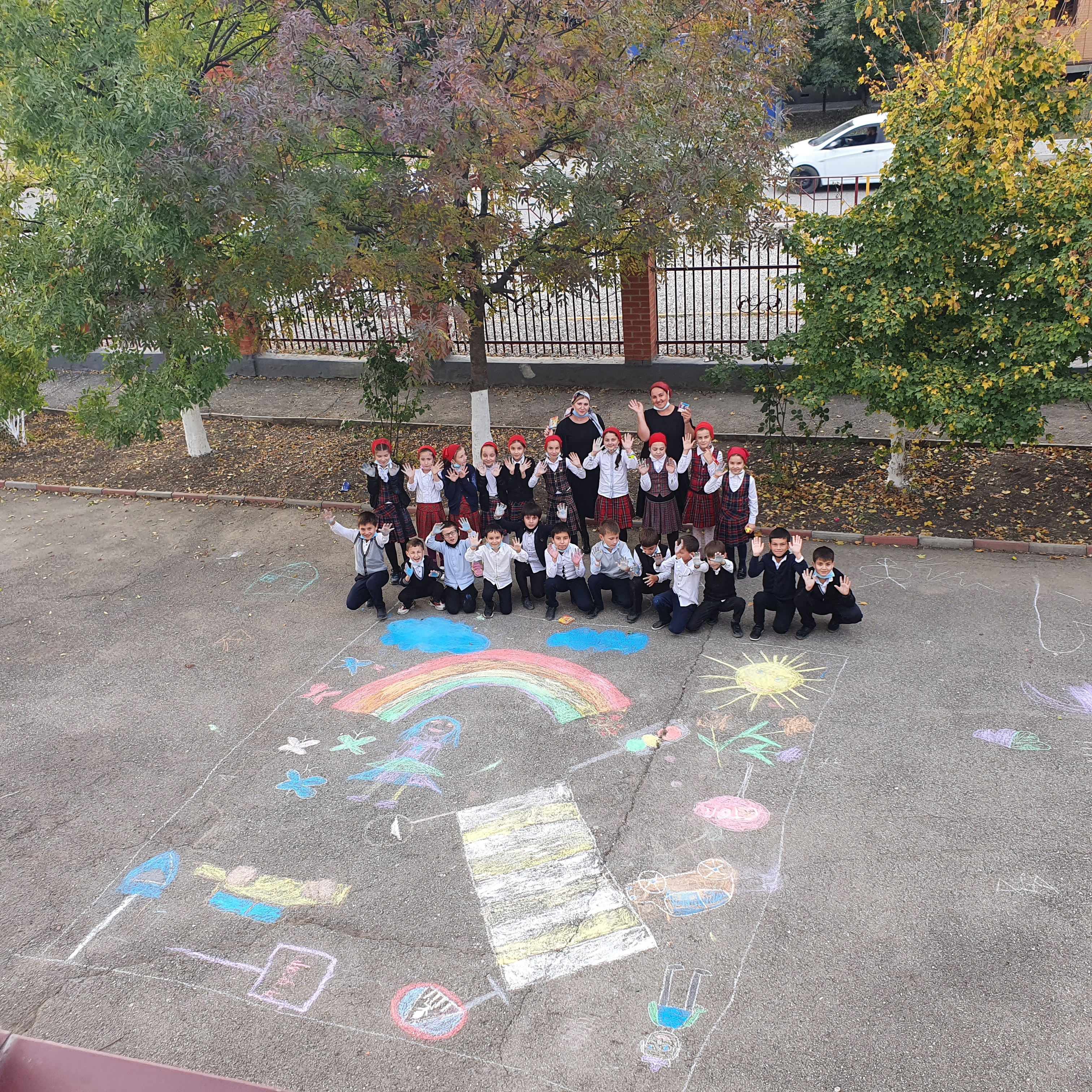 Наши малыши рисуют мелом на асфальте....