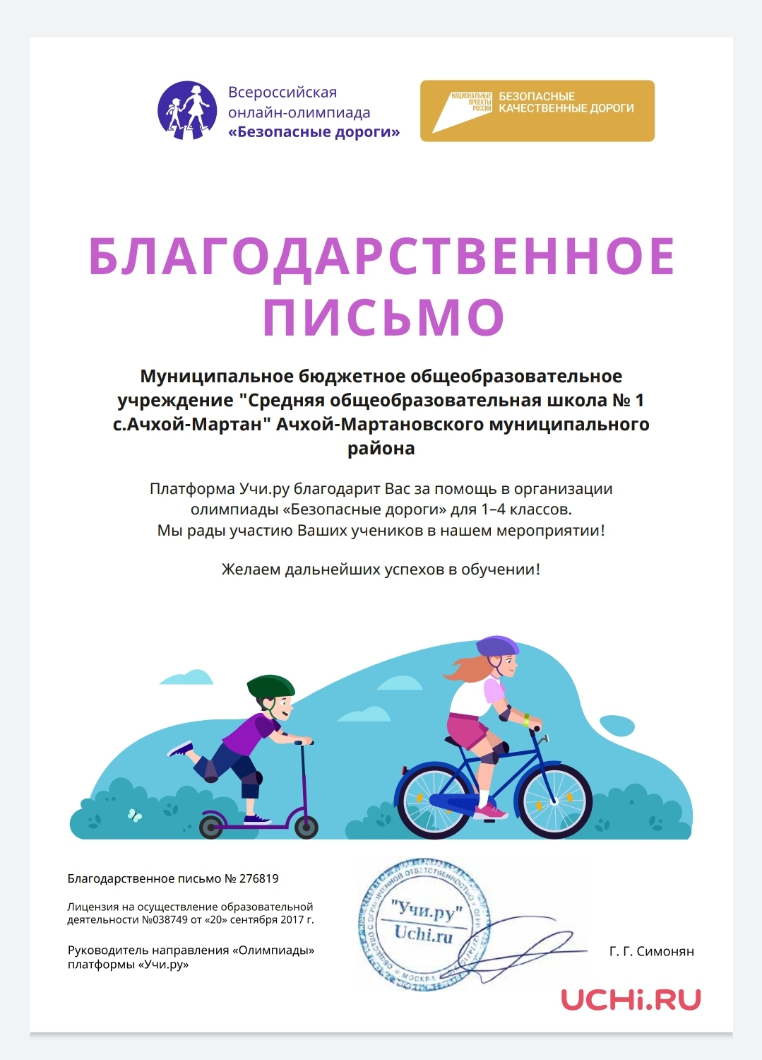 Муниципальное бюджетное общеобразовательное учреждение "Средняя общеобразовательная школа №1 г.Ачхой-Мартан" Ачхой-Мартановского муниципального района