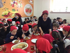 Учащиеся начальных классов с удовольствием кушают вкусные обеды