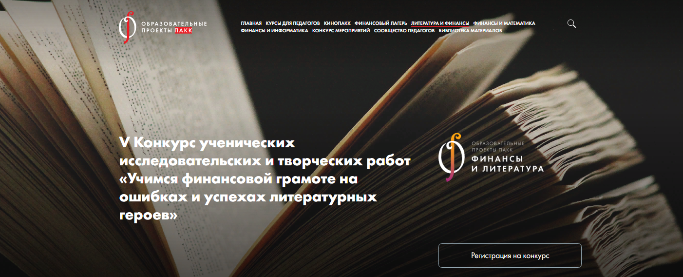 03.02.2021До 15 февраля 2021 года продолжается регистрация участников на V ежегодный конкурс ученических исследовательских и творческих работ «Учимся финансовой грамоте на ошибках и успехах литературных героев». Одновременно идет прием конкурсных работ от зарегистрированных участников, он завершится 28 февраля. Не забудьте зарегистрироваться!