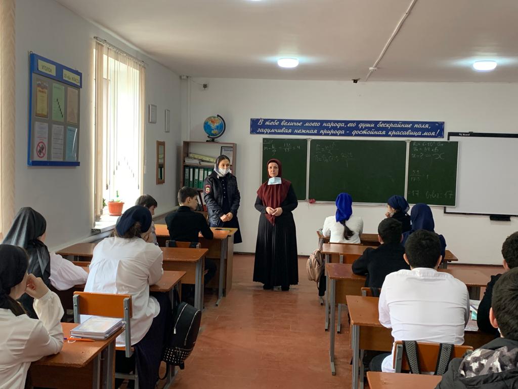 Педагог по ДНВ Мухданова Э. М. вместе с представителем ПДН Домбаевой Л. З провела беседы в десятых и восьмых классах на тему "Вред от курения, алкоголя и наркотиков"