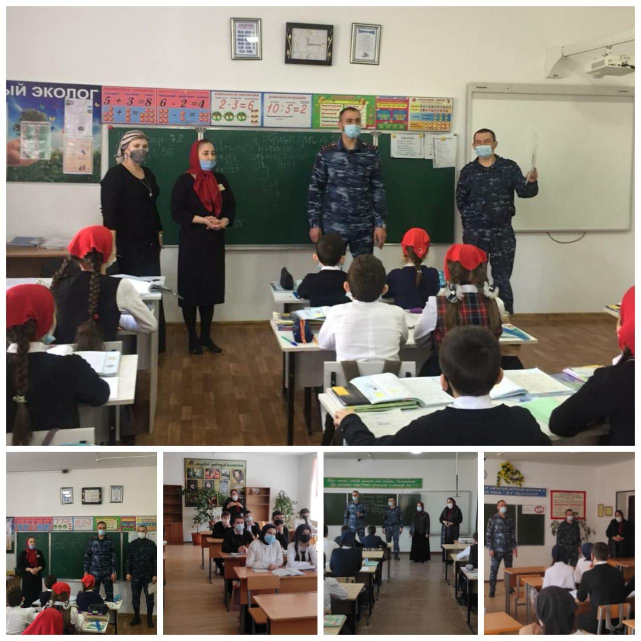 Инспектор ОГ ВОГОиП МВД по Ачхой-Мартановскому району лейтенант полиции Гуль Александр Сергеевич провел беседы в клаасх на тему "Профилактика экстремизма среди молодежи"