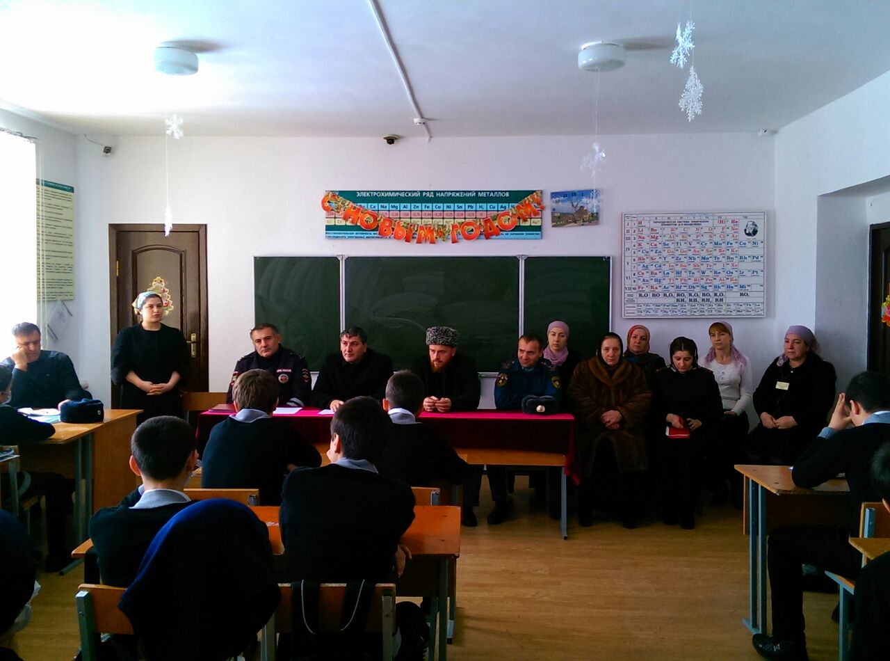 17.12.2016 года в МБОУ "СОШ N1 с. Ачхой-Мартан" с учащимися 8-11 классов была проведена профилактическая работа с привлечением ПДН, педагогов-духовников других школ и работников сельской администрации