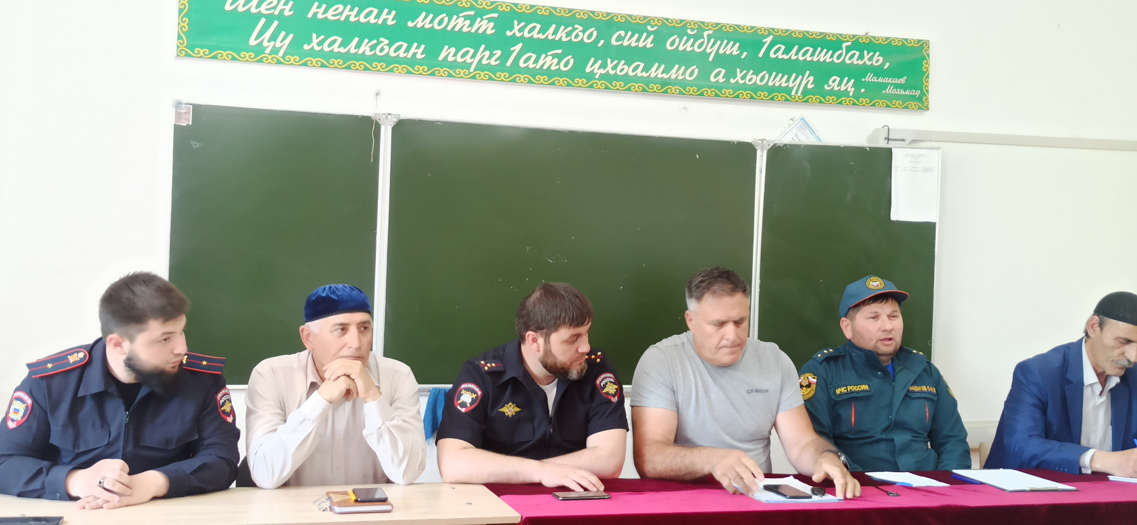 На встречу были также приглашены представители ОМВД России по Ачхой-Мартановскому р-ну А.Ш. Хакимов, ОПДН Т.А. Бетельгереев, ОУР ОМВД Ш.Ш. Паршоев, С-М.Л. Мадагов, ОГИБДД ОМВД М.Н. Висерханов, РОО С-М.Х. Берзигов.
