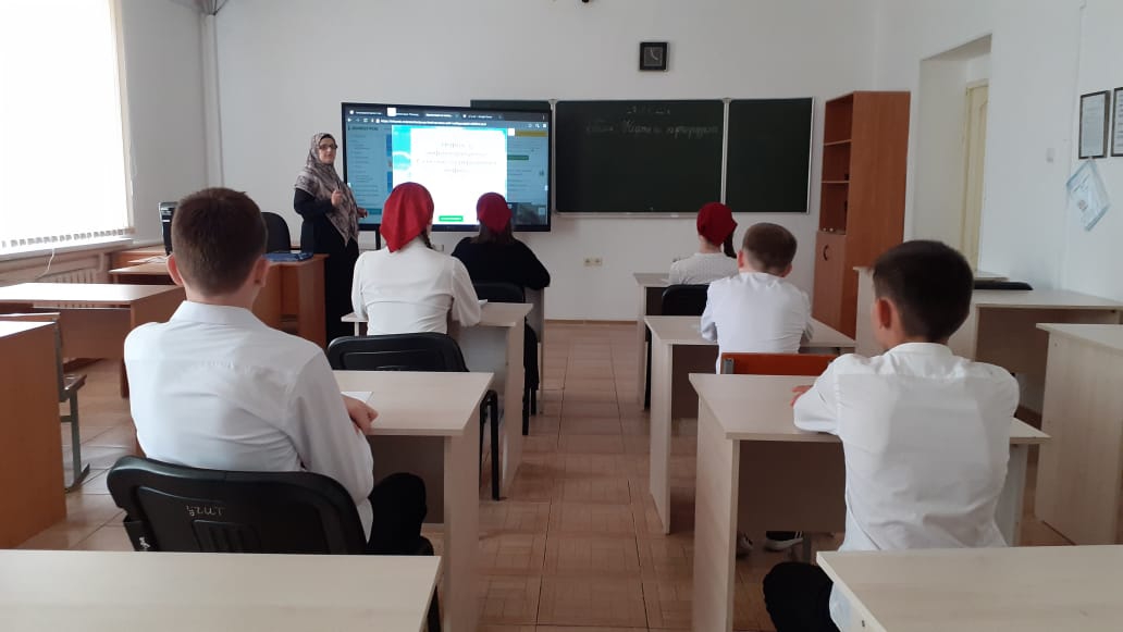 В рамках федерального проекта «Современная школа» национального проекта «Образование» учитель химии Садулаева Лариса Салмановна провела занятие с учащимися 8-го класса на тему «Нефть и нефтепродукты».