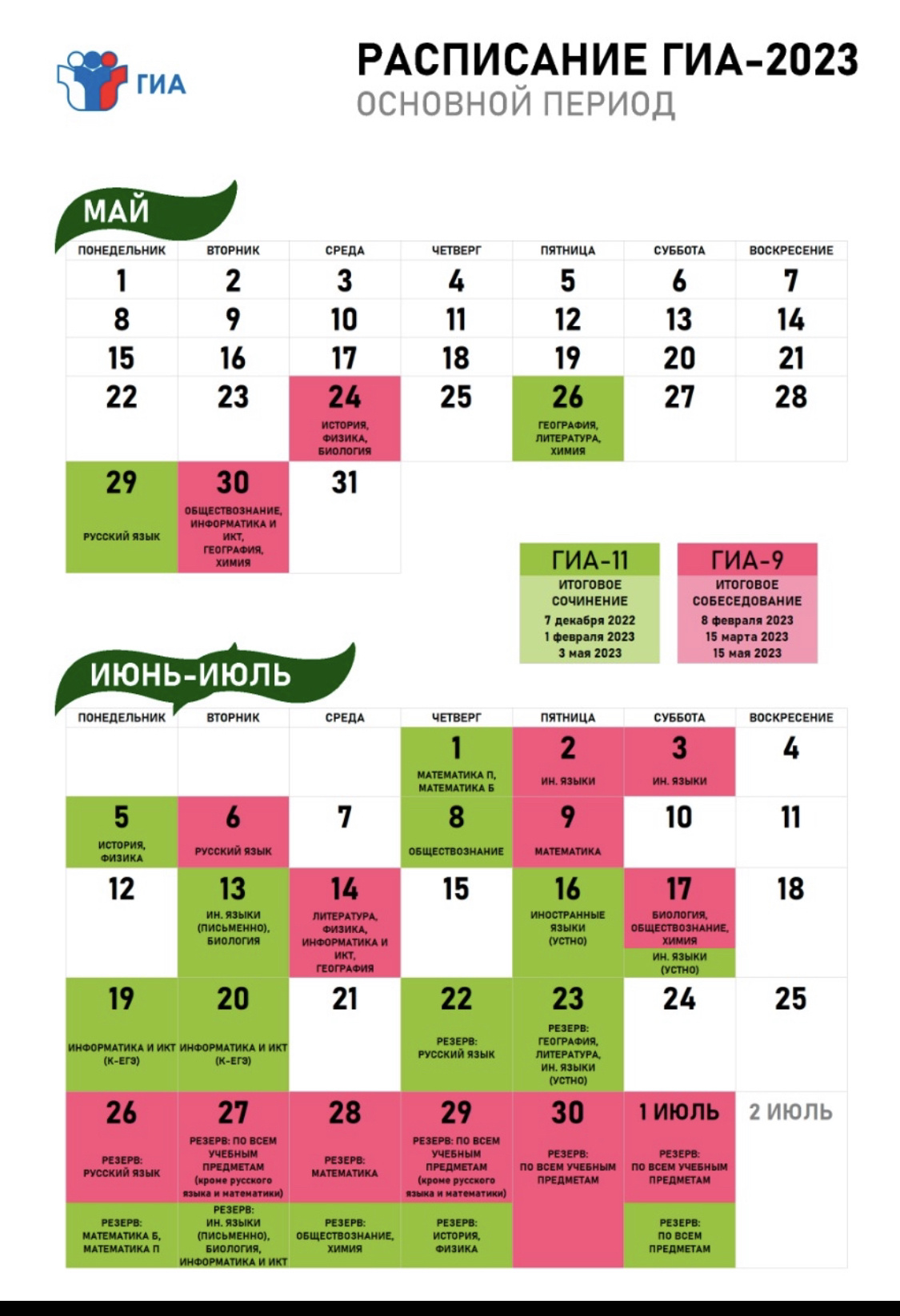 РАСПИСАНИЕ ГИА - 2023ОСНОВНОЙ ПЕРИОД