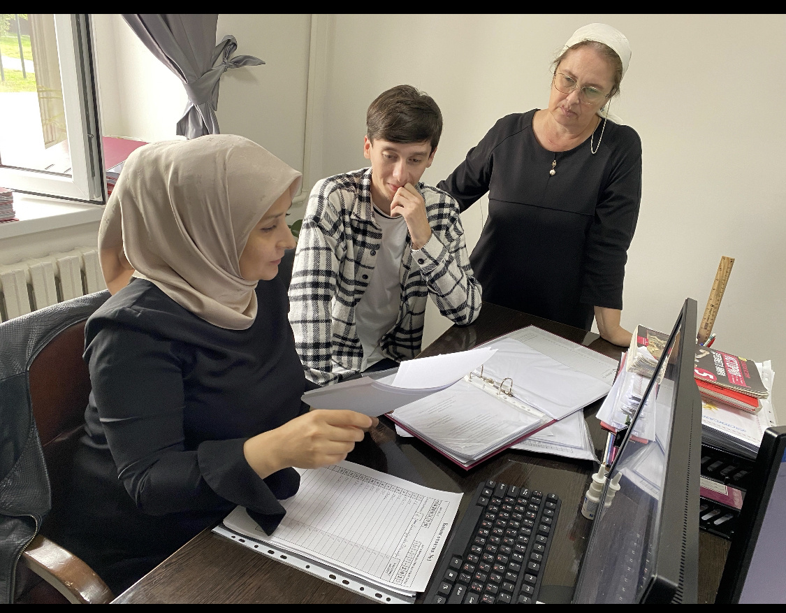 учителя истории и обществознания Тамриевой Э.С-И. с молодым педагогом Алхастовым А.Р.