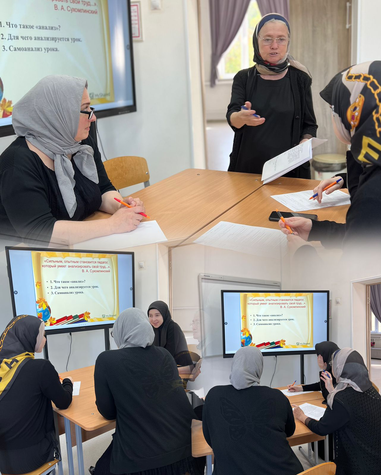 Знакомство молодых специалистов Дадаевой. Р. Т. и Зубайраевой. Я. С. С опытом работы учителя начальных классов Хатуевой. А. А.