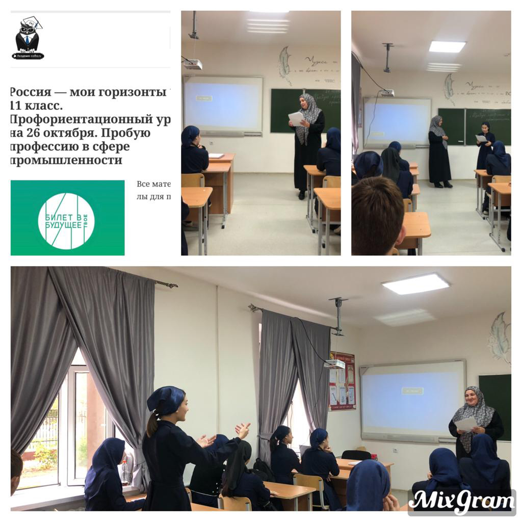 26.10.2023 года в МБОУ "СОШ 1 с. Ачхой-Мартан" прошло занятие профориентационного курса "Моя Россия- мои горизонты" в рамках проекта "Билет в будущее".