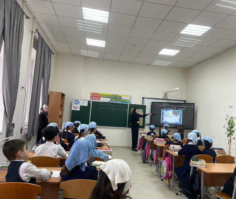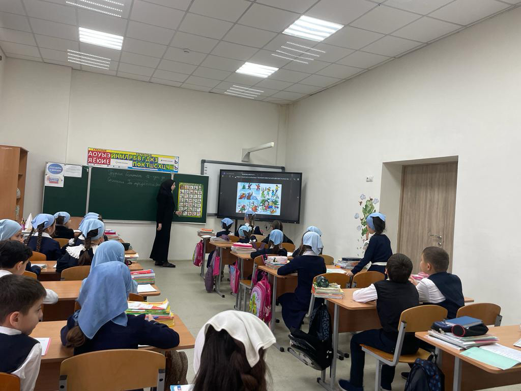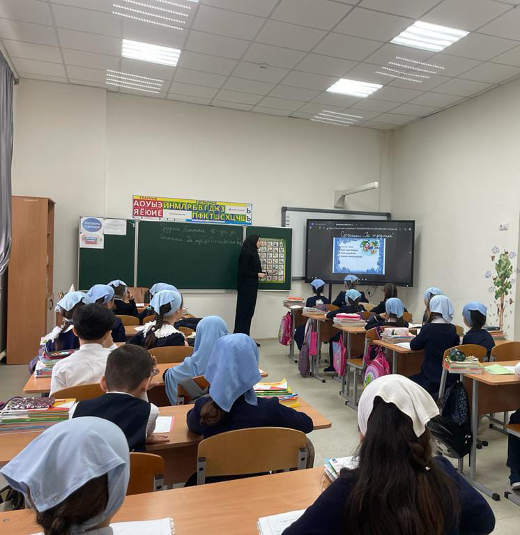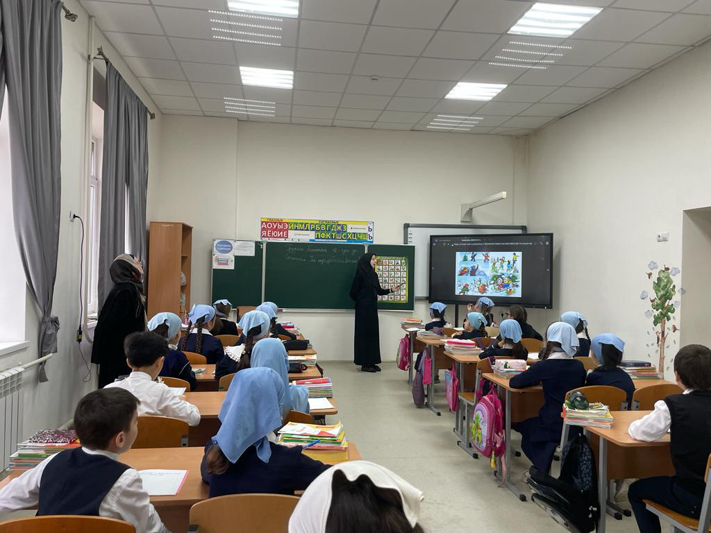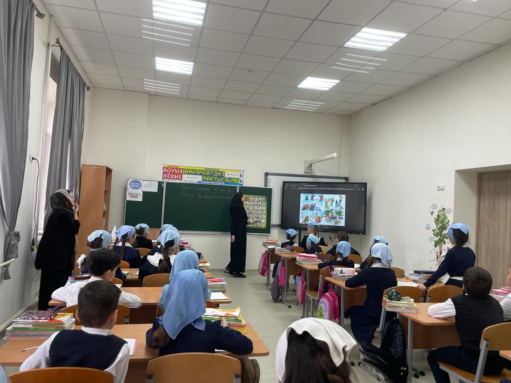 В рамках нацпроекта "Образование", Года педагога и наставника 12.12.2023 года в МБОУ «СОШ №1» с. Ачхой-Мартан учителем начальных классов Зубайраевой Я. С. был проведен показательный урок че