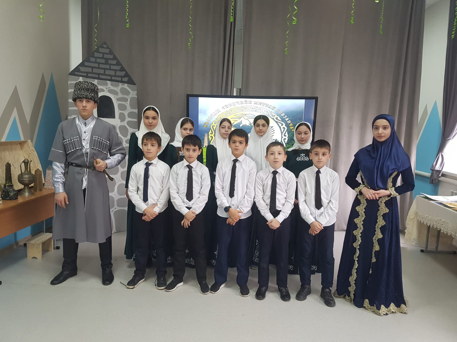 В рамках нацпроекта "Образование" 22.12.2023 года, в МБОУ "СОШ 1 с. Ачхой-Мартан" Прошло торжественное мероприятие, посвящённое закрытию "Года Чеченского языка".