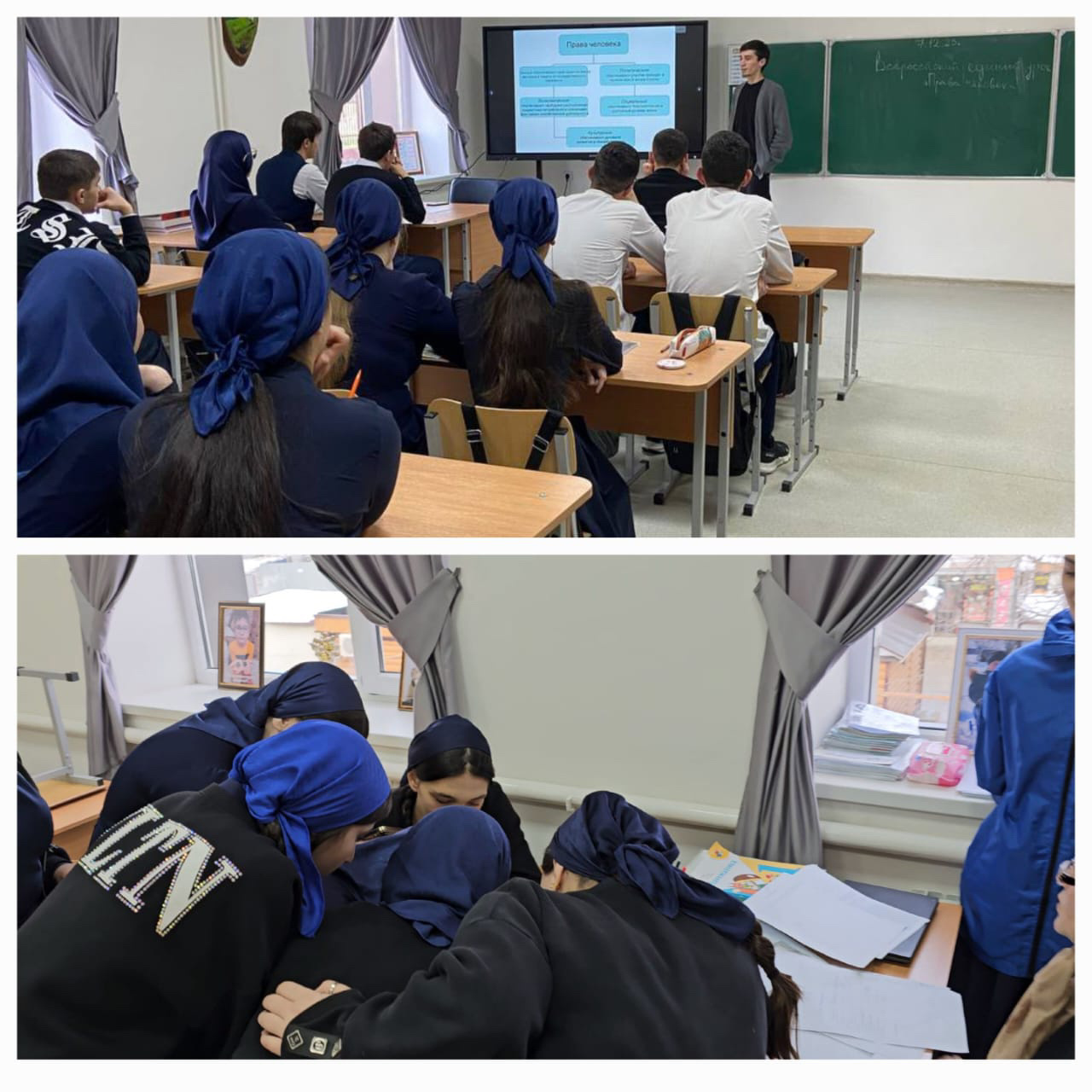 Мероприятие подготовила учитель истории и обществознания Алхастов А.Р. Викторина прошла в очень интересном формате. Педагог подобрал интересные задания, которые в полной мере раскрывали смысловое значение таких слов как "Право" и "Обязанности", "Знаешь ли ты закон". Игра состояла из нескольких туров. Само мероприятие началось с просмотра фрагментов мультфильмов "Вовка в тридевятом государстве", "Чиполлино", "Нехочуха". И ребятам предстояло ответить на вопрос: в каком же из этих государств им хочется жить". Обучающиеся ответили, что хотят жить в государстве, где соблюдаются права ребенка. Обе команды "Смит" и "Закон" справлялись с заданиями хорошо, были активны, каждый хотел показать свои знания, умения. По итогам данной викторины были определены победители и награждены дипломами.