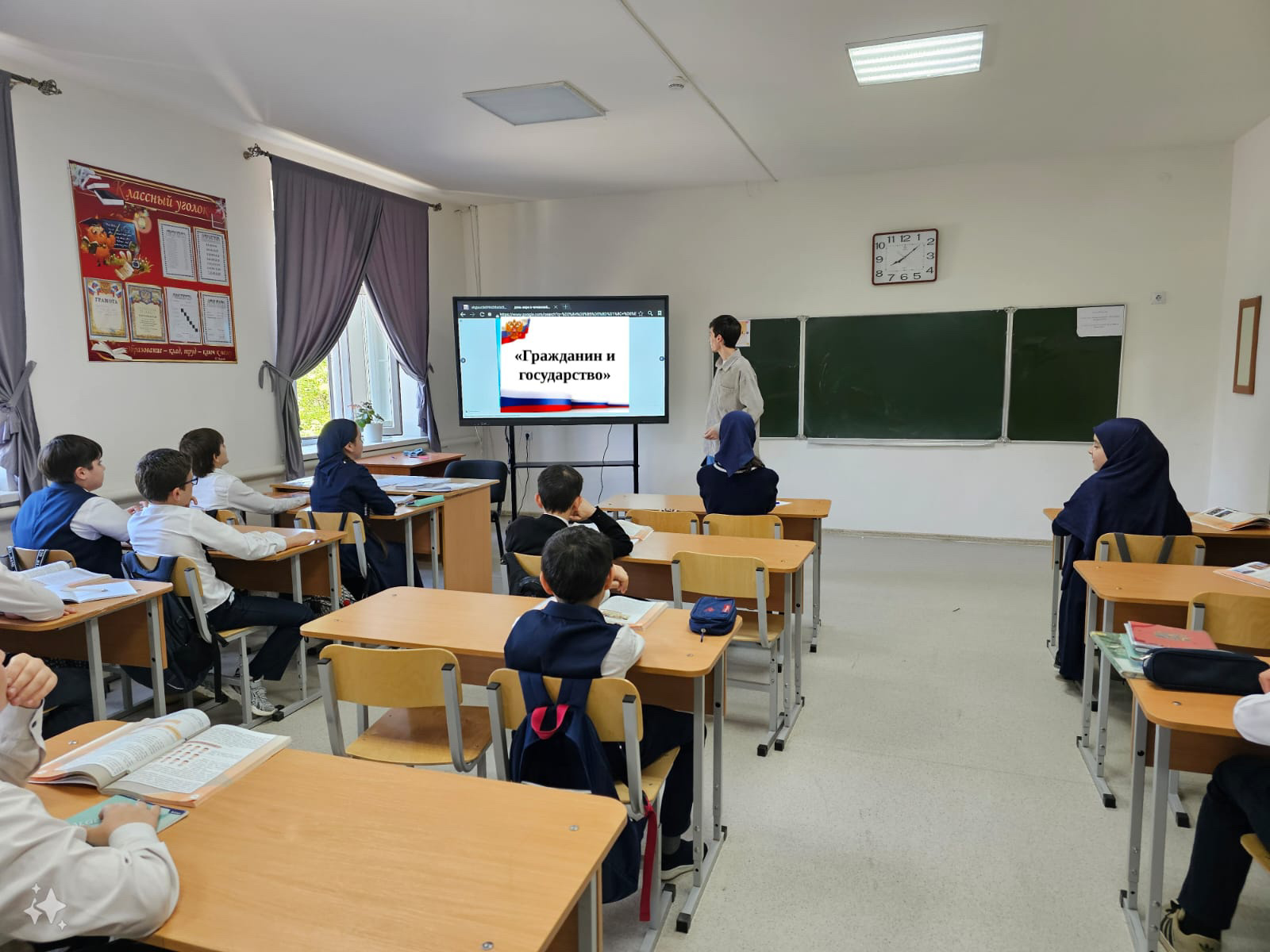 23 апреля на уроках истории прошли беседы на тему «Государство и гражданин». В ходе беседы с учащимися учитель истории и обществознания Алхастов А.Р.,