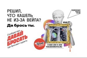 с Минздравом России запустило коммуникационную кампанию «Электронные сигареты и что они скрывают». Рекламные баннеры побуждают людей задуматься, так ли безопасны электронные сигареты для здоровья и какие последствия для организма может спровоцировать курение. Решил, что кашель не из-за вейпа? Считаешь, что курение электронных сигарет не вредно и это просто «клубничный пар»? Да брось ты.