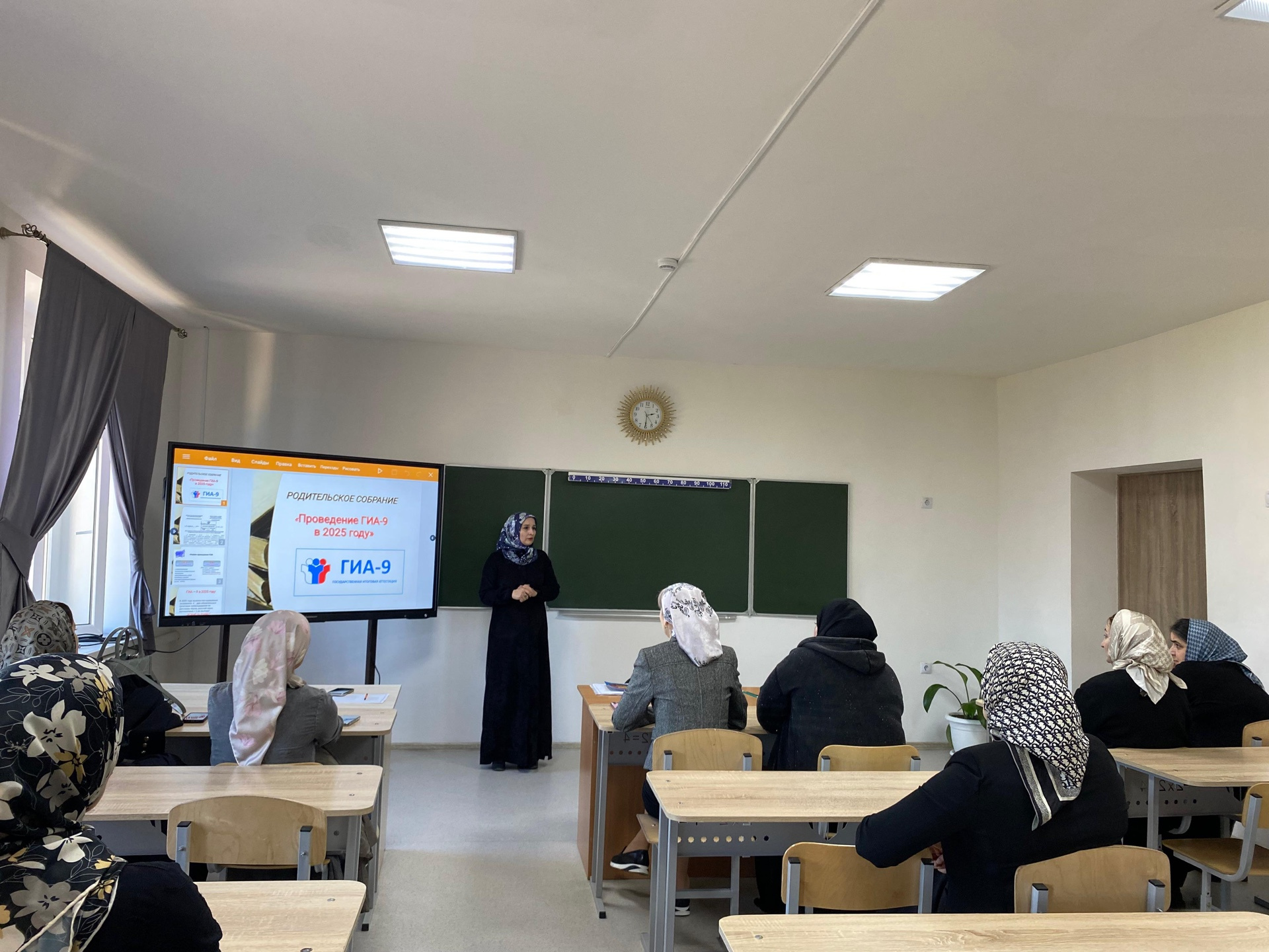 08.11.2024В МБОУ «СОШ №1 с. Ачхой-Мартан» прошли родительские собрания в выпускных классах. На собрании заместитель директора по учебной работе, Тамриева Элина Сайд-Ибрагимовна ознакомила родителей с формами и сроками проведения ГИА-2025. Особый акцент был уделен изменениям, которые были внесены в систему оценивания. Она рассказала о важности подготовки и необходимости соблюдения всех инструкций.